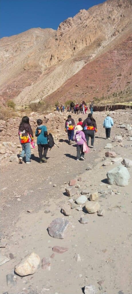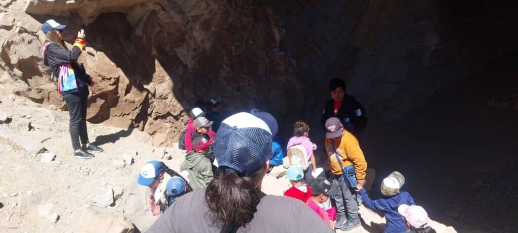 En esta primera experiencia participaron 21 alumnos de la Escuela N° 53 “Marcelino Vargas” de La Ciénega, acompañados por la directora Prof. Mariela Montalvo y su equipo de docentes. La actividad consistió en una caminata hacia las Cuevas de Huachichocana, sitio de enorme relevancia arqueológica y una de las principales razones por las que Purmamarca fue declarada Patrimonio de la Humanidad. En este lugar se han encontrado huellas y testimonios de nuestra cultura con más de mil años de antigüedad.