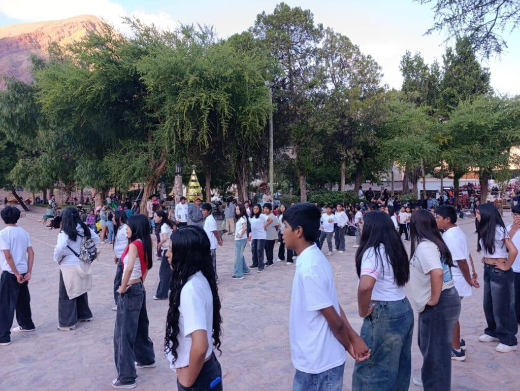 El encuentro se desarrolló en la Plaza 9 de Julio, donde, al ritmo de la quena, el redoblante y el bombo, los niños llevaron la adoración al Niño Dios, manteniendo viva una expresión cultural que se transmite de generación en generación.